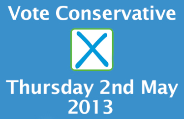 Vote Conservative - Thursday 2nd May 2013 8th April 2013 To ensure a bright future in your local area, we're asking you to vote Conservative on Thursday 2nd May! Local News